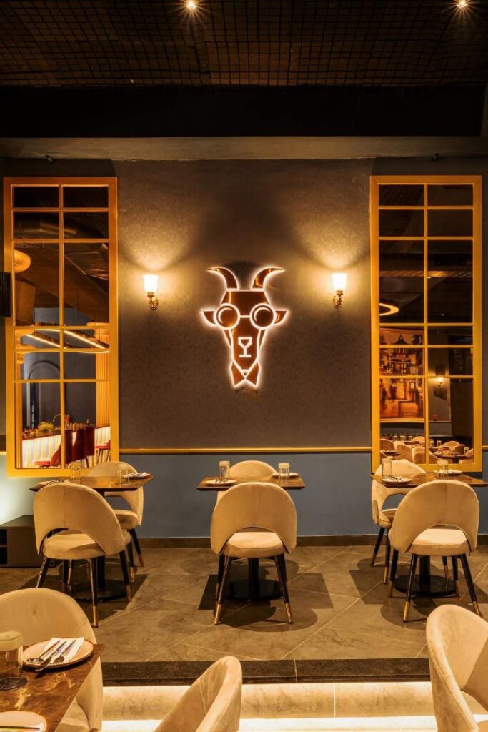 To establish a connection with the outdoors, a carefully planned semi-open area was incorporated into the restaurant’s layout. Large windows or a charming patio enable the infusion of natural light and fresh air, contributing to a relaxed and inviting ambiance that complements the interior design.